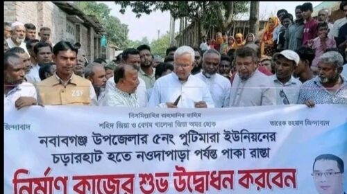দিনাজপুর জেলার নবাবগঞ্জ উপজেলার পুটিমারা ইউনিয়নের চড়ারহাট থেকে নওদাপাড়া পর্যন্ত পাকা সড়ক নির্মাণ কাজের শুভ উদ্বোধন করেন- সমাজকল্যাণ মন্ত্রী